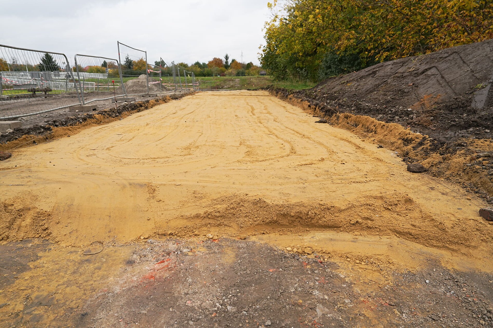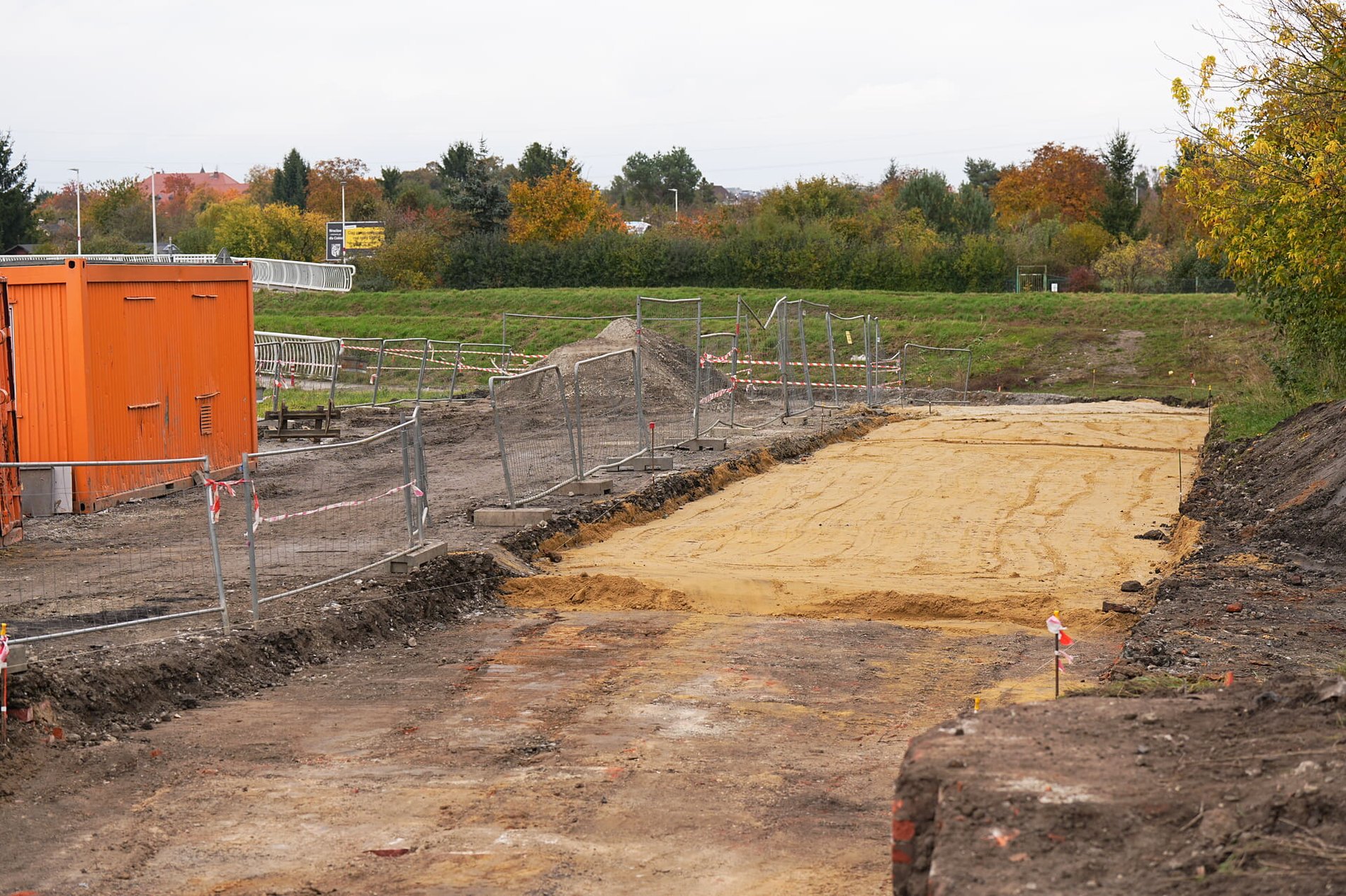 Dojazd od ulicy Trawowej nie mógł powstać w tym samym czasie, co od Francuskiej, bowiem trwały tu prace prowadzone przez MPWiK. Po ich zakończeniu na drogę weszła firma Bickhardt Bau Polska, która za niemal 1,6 mln zł przebuduje 333-metrową trasę.