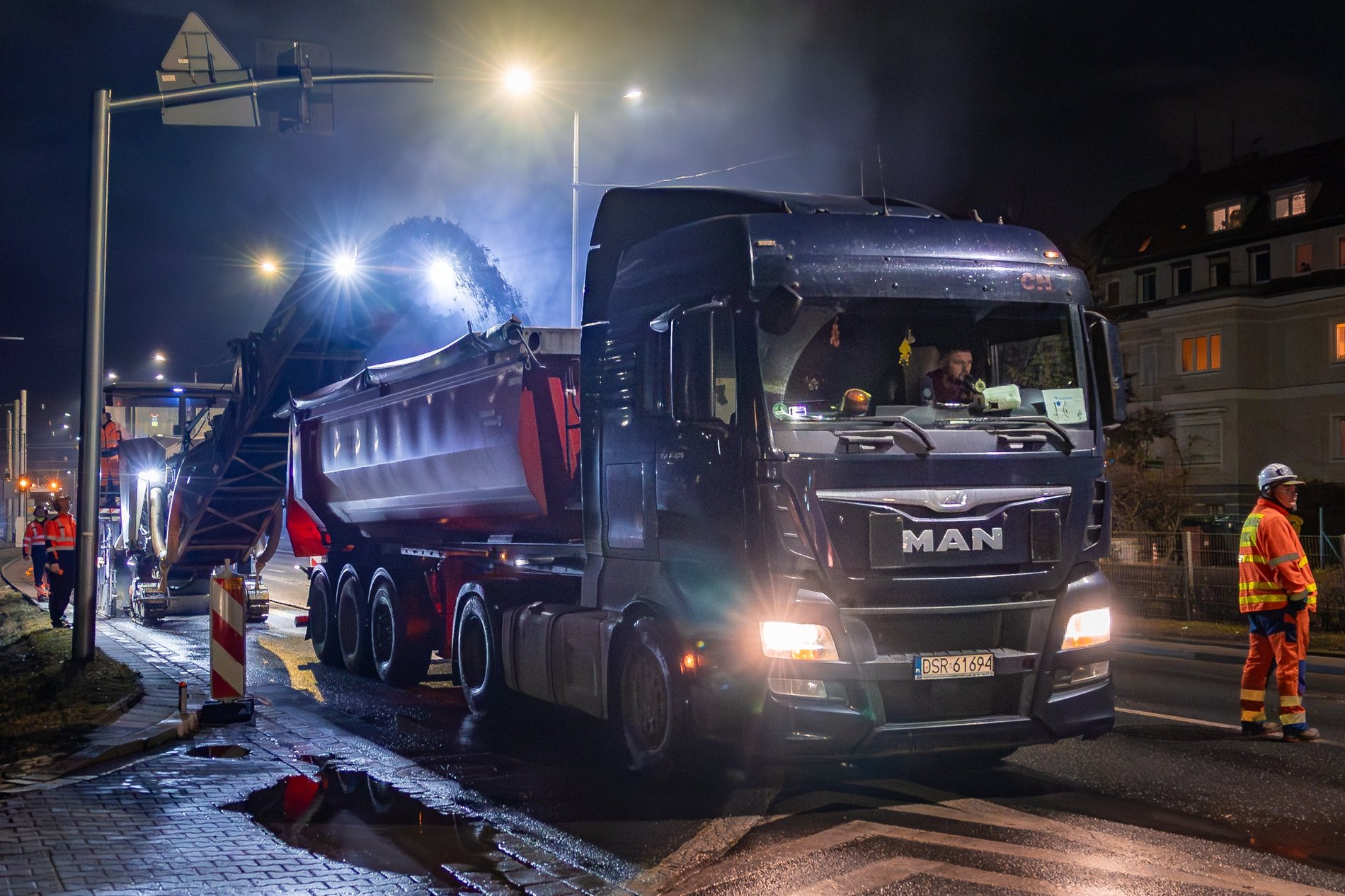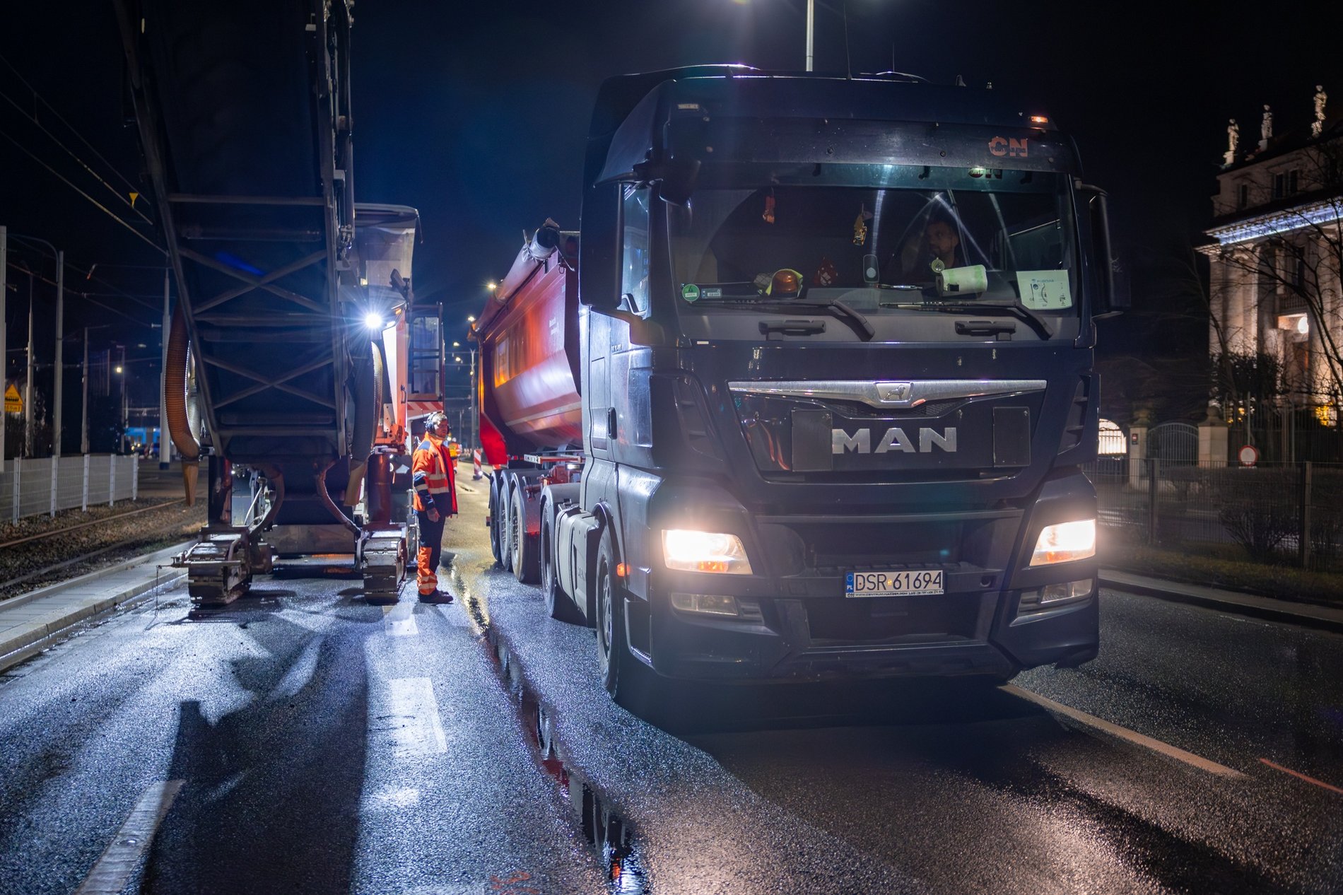 W niedzielę wieczorem wykonawca zaczął frezowanie asfaltu na odcinku ul. Powstańców Śląskich między Orlą a Krzycką. Na pierwszy ogień poszedł prawy pas ruchu jezdni w kierunku wyjazdu z miasta. Na zdjęciach naszego fotoreportera - Bartosza Mokrzyckiego możecie zobaczyć, jak "pazury" maszyny frezującej radziły sobie z asfaltem.