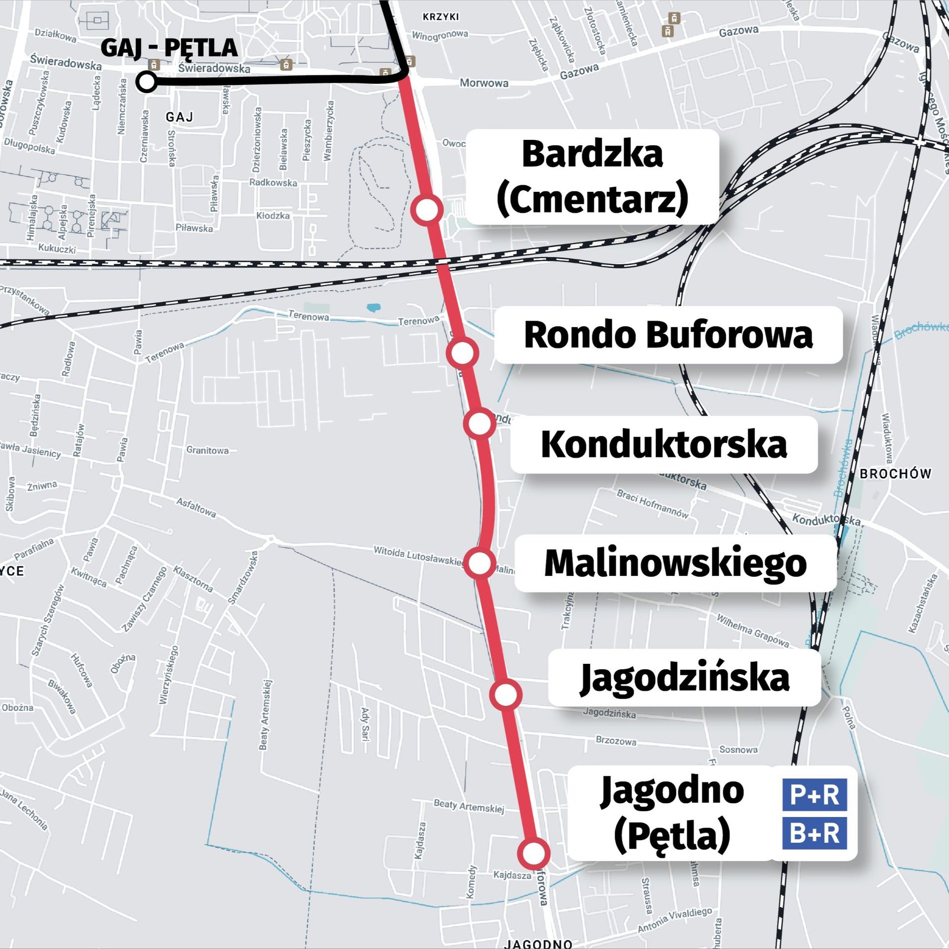 Wiadukt nad Bardzką ma powstać do 2030 roku. Obecnie trwa projektowanie nie tylko trasy tramwajowej w miejscu wydzielonego buspasa, ale jednocześnie przebudowy ulicy Bardzkiej, aby niemal na całej długości była czteropasmowa.
