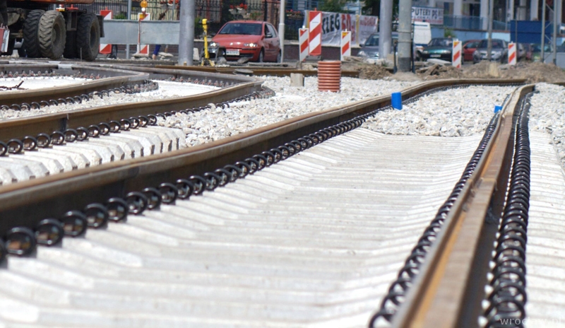 Prace na Ślężnej obejmują wymianę szyn, podkładów i tłucznia. Mają zakończyć się do końca sierpnia.