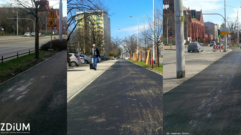 Nową trasę dla rowerzystów widać też już na fragmentach wzdłuż ul. Grabiszyńskiej. Na odcinku od ul. Stalowej do pl. Legionów układana jest już nowa nawierzchnia.