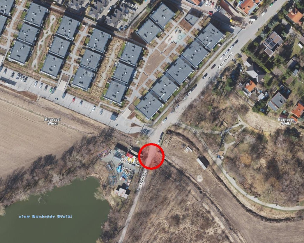 Miejsce, w którym tory przecinają ulicę Kunickiego