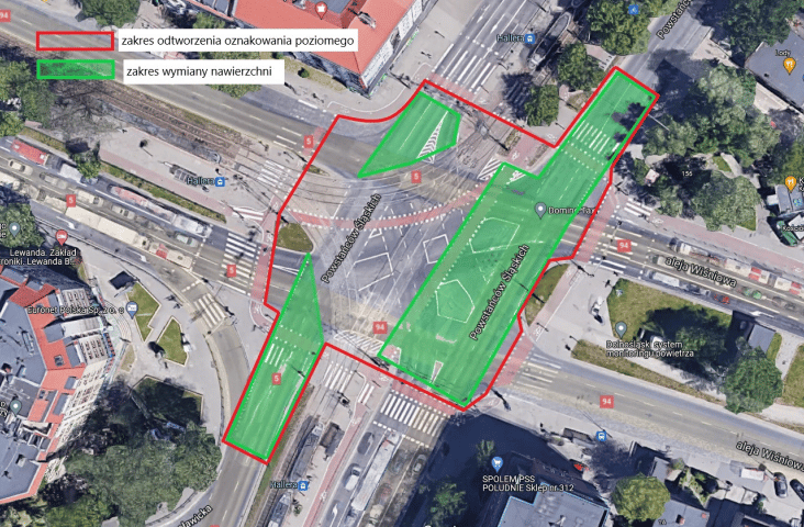 - skrzyżowanie ulic: Powstańców Śląskich, Hallera i Wiśniowej (poprawa stanu technicznego jezdni)