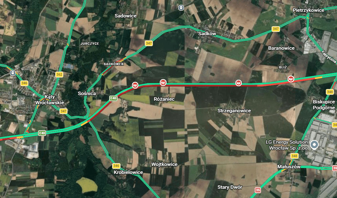 Do wypadku doszło około godziny 14.20 na jezdni w stronę Wrocławia, na kilometrze 160+000, między węzłami Kąty Wrocławskie a Pietrzykowice. Ruch w miejscu wypadku odbywa się wyłącznie prawym pasem. Na jezdni w stronę Wrocławia tworzy się korek.
