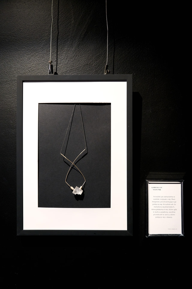 – W jubilerstwie w ogóle nie oprawia się kryształów soli, ale był tak piękny, że nie mogłam się oprzeć, zwłaszcza że wyobraziłam sobie sól jako wszystkie niewypłakane łzy, które nosimy w sobie. A kiedy kryształ soli się rozpuści trzymające ją z obu stron magnesy połączą się i uwolnią gromadzone napięcia – opowiada wrocławianka.
