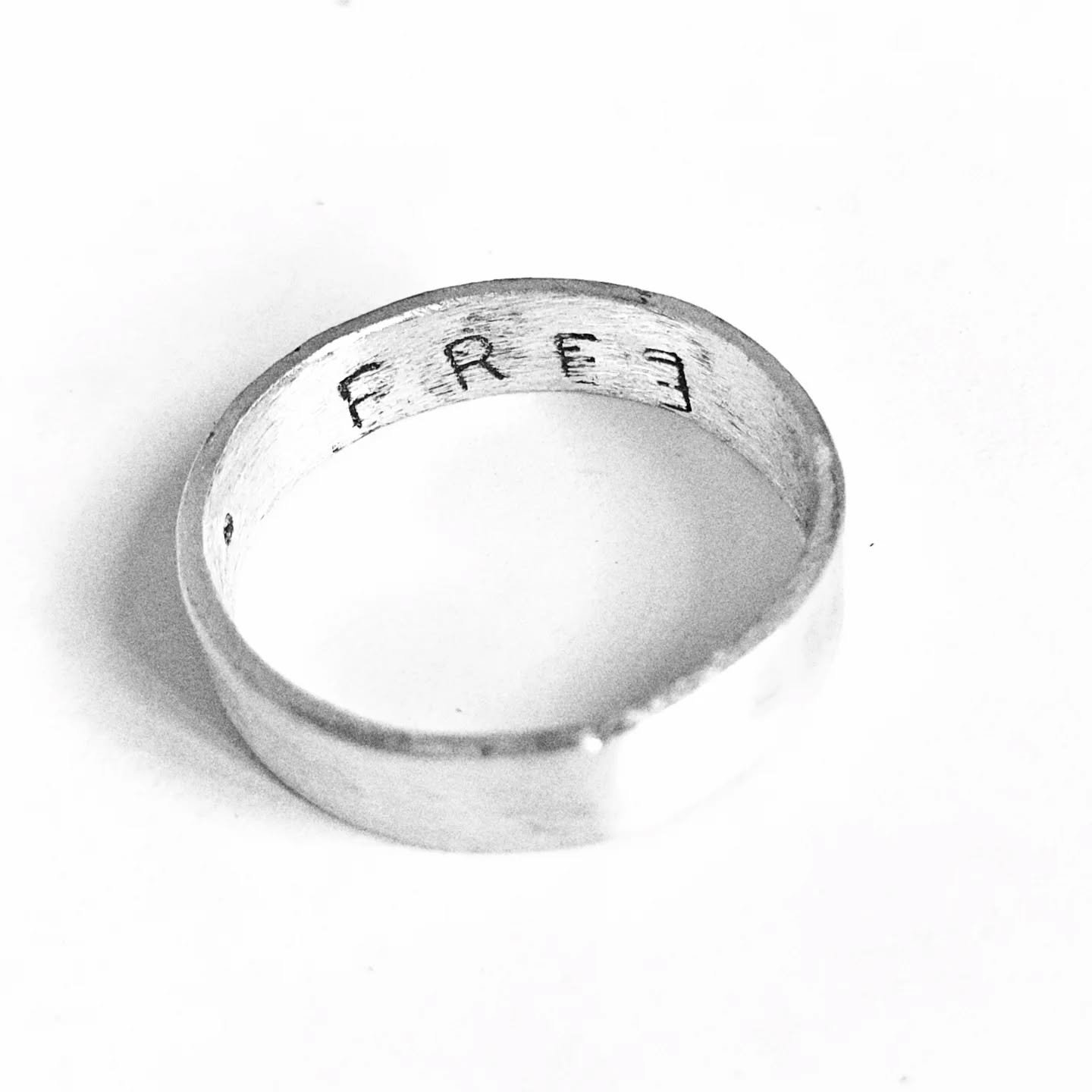 – Nowa obrączka odzwierciedla jej relację z odczuwaniem siebie po rozwodzie. Trochę dziwnego poczucia wolności – stąd ostatnie „E” w słowie „FREE” jest na odwrót. Wiarę w nowy początek symbolizuje diament – tłumaczy wrocławska złotniczka.