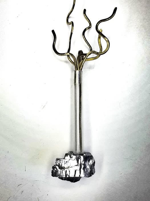 – Srebrzysto-czarny kryształ galeny prezentuje lęk, pustkę, nicość, a złote promienie uwolnienie, zjednoczenie i światło. Oba elementy łączy tunel wykonany z przezroczystej, szronionej rurki – tłumaczy kompozycję Dominika Kuźniar.