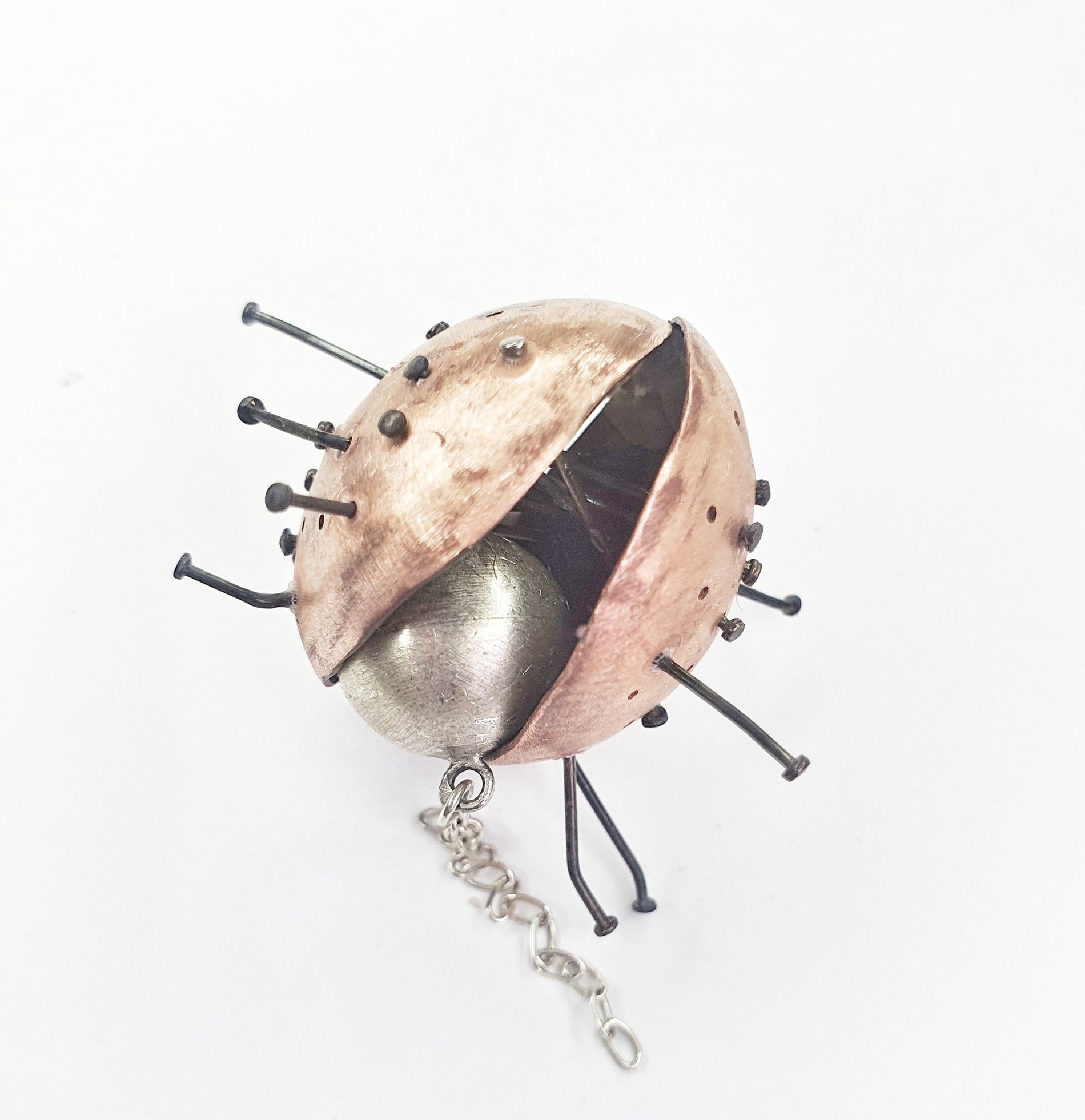 – Obrazuje kasztan, gdzie kolce – zamiast chronić nasionko-dziecko – wbite są do wewnątrz. Toksyczna relacja jest jednak przepracowywana, mały kasztanek już prawie uwolnił się z klatki – wyjaśnia Dominika Kuźniar.