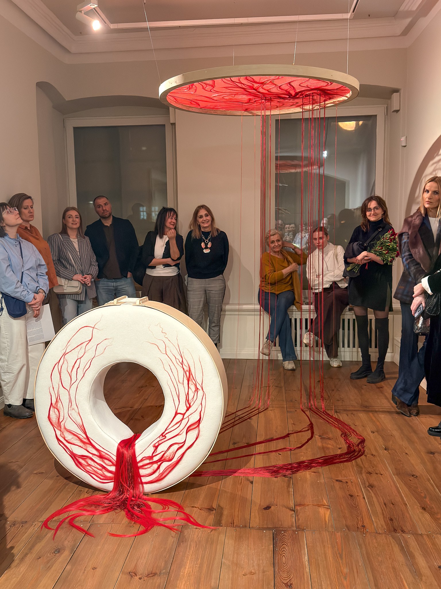 Już pierwsza praca autorstwa Izy Michniowskiej powoduje u części widzów wyraźny dyskomfort. Osobista, symbolizująca walkę z chorobą instalacja, ocieka czerwonymi nićmi. Autorka mówi otwarcie o swoich przeżyciach, dzieląc się interpretacją osobistych problemów.