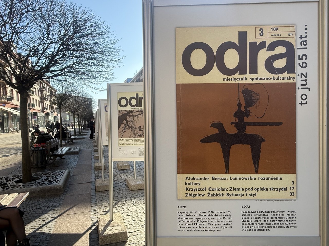 Wystawa plenerowa „Odra” - to już 65 lat...” na ul. Świdnickiej, na którą Państwa zapraszam, będzie czynna do 27 marca. Pokazujemy, jak wyglądała historia „Odry” przez te wszystkie lata. Jubileusz obchodzimy też specjalnym numerem miesięcznika „Odra”podkreśla Mariusz Urbanek, redaktor naczelny pisma.