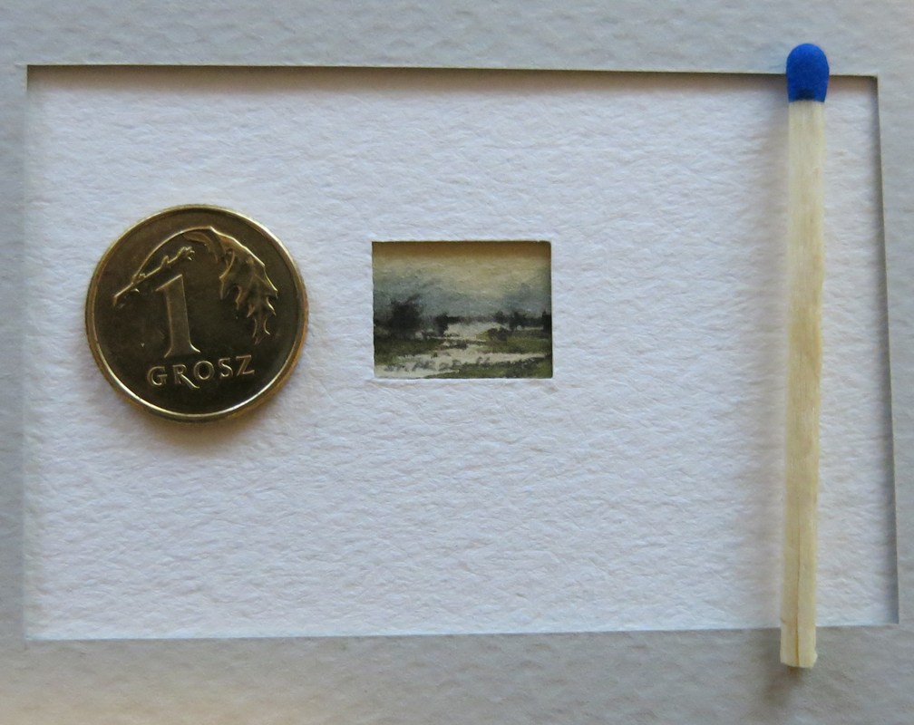 Stanisław Przewłocki to mistrz akwareli. Maluje miniatury w formacie 8 na 6 milimetrów i mniejsze. Żeby stworzyć na skrawku papieru zimowy pejzaż potrzeba profesjonalnej lupy, zegarmistrzowskiej precyzji, pewnej ręki i sokolego oka. Z tym problemów autor nie ma, bo w wojsku był strzelcem wyborowym. W akwareli nie są możliwe poprawki. Po siedmiu minutach, praca jest gotowa.