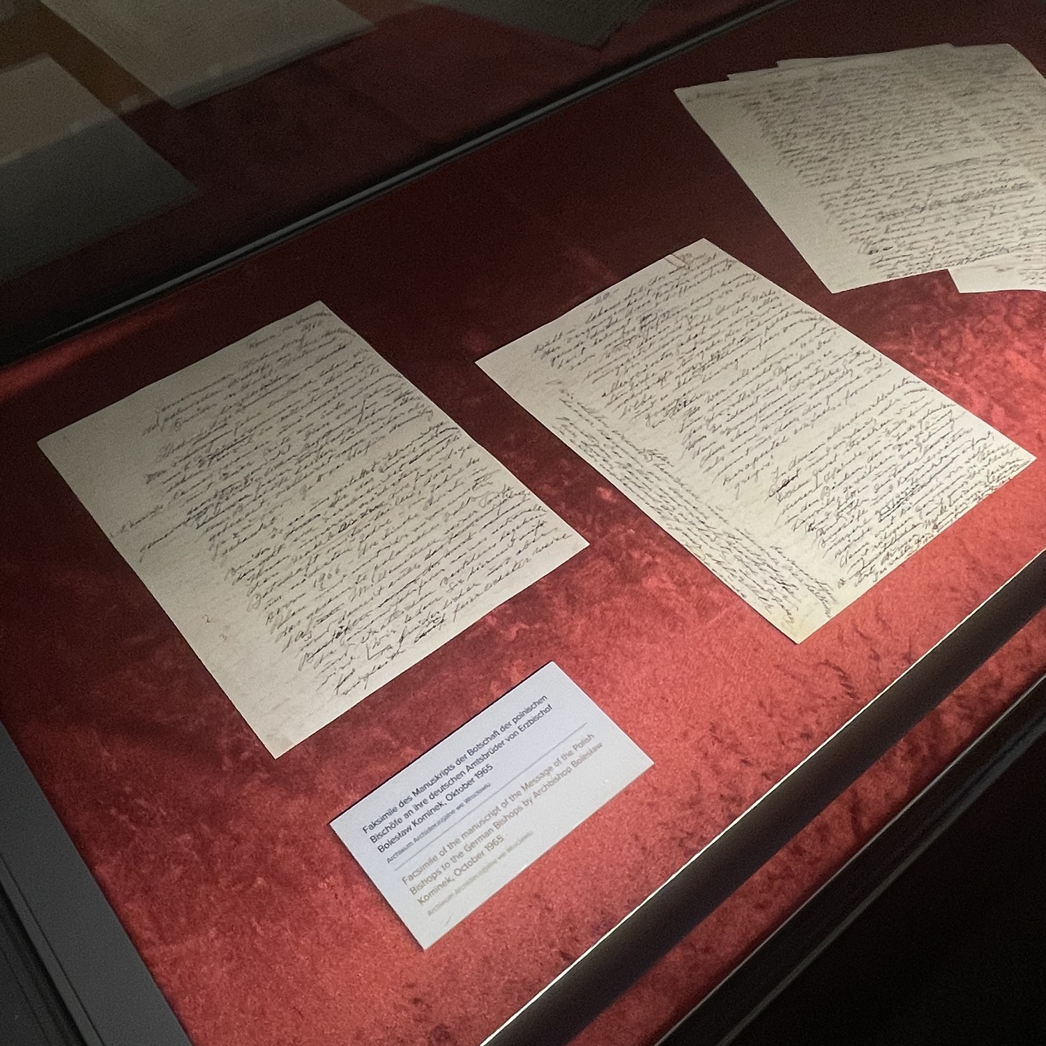 Na wystawie będzie można zobaczyć faksymile dokumentów – m.in. rękopis listu biskupów polskich autorstwa arcybiskupa Bolesława Kominka (pisany od razu w języku niemieckim). Prezentowane są również ostateczna wersja Orędzia wysłana do biskupów niemieckich oraz odpowiedź hierarchów z Niemiec.