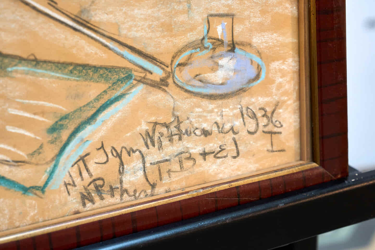 Ciekawa jest technika (ołówek i kredki pastelowe na papierze), ale również rozbudowana sygnatura, która znajduje się najczęściej w prawym dolnym rogu. Dzięki niej wiemy, co dokładnie zażywał, albo popijał Witkacy wykonując portret.