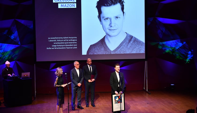 – Jestem zaskoczony, wzruszony, bardzo się cieszę. Nie robimy tego wszystkiego dla nagród, ale jest bardzo miło być dzisiaj tutaj – przyznał Grzegorz Mazoń dziękując kapitule, która, jak podkreślił, uczestniczy w życiu kulturalnym, pisze o aktorach.