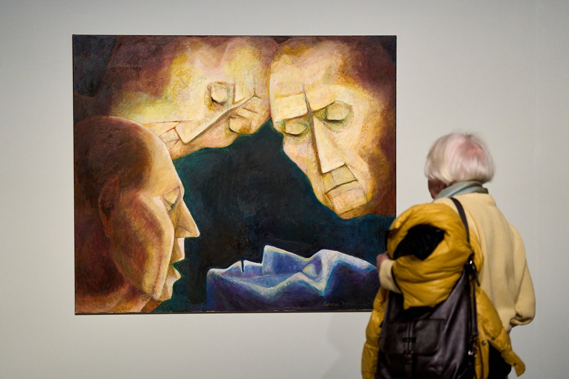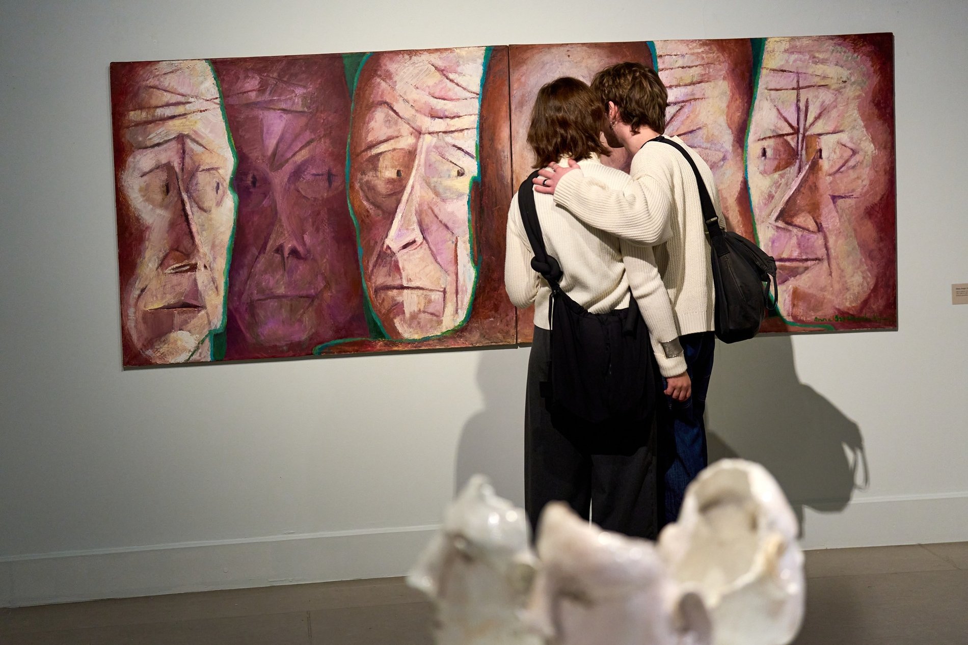 Artystka wspomina cykl obrazów z lat 50., gdzie najpierw było pogodnie, męsko-damsko. Na wystawie w MA znalazły się szkice codzienności, wykonane przez nią jeszcze w trakcie studiów i tuż po ich ukończeniu. W tym odważne kompozycje przedstawiające splecione ciała kochanków, sceny z życia rodzinnego oraz intymne portrety kobiety z dzieckiem – autoportrety młodej matki.