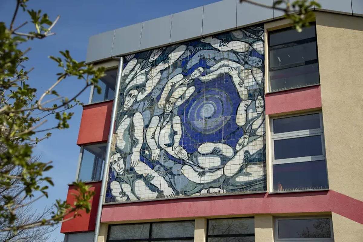 Na szczęście wciąż możemy podziwiać jej ceramikę na ścianie Instytutu Matematyki UWr przy pl. Grunwaldzkim. Projekt powstał w latach 70. XX w., a autorka własnoręcznie malowała płytki. Szkice możemy zobaczyć na wystawie w Muzeum Architektury.