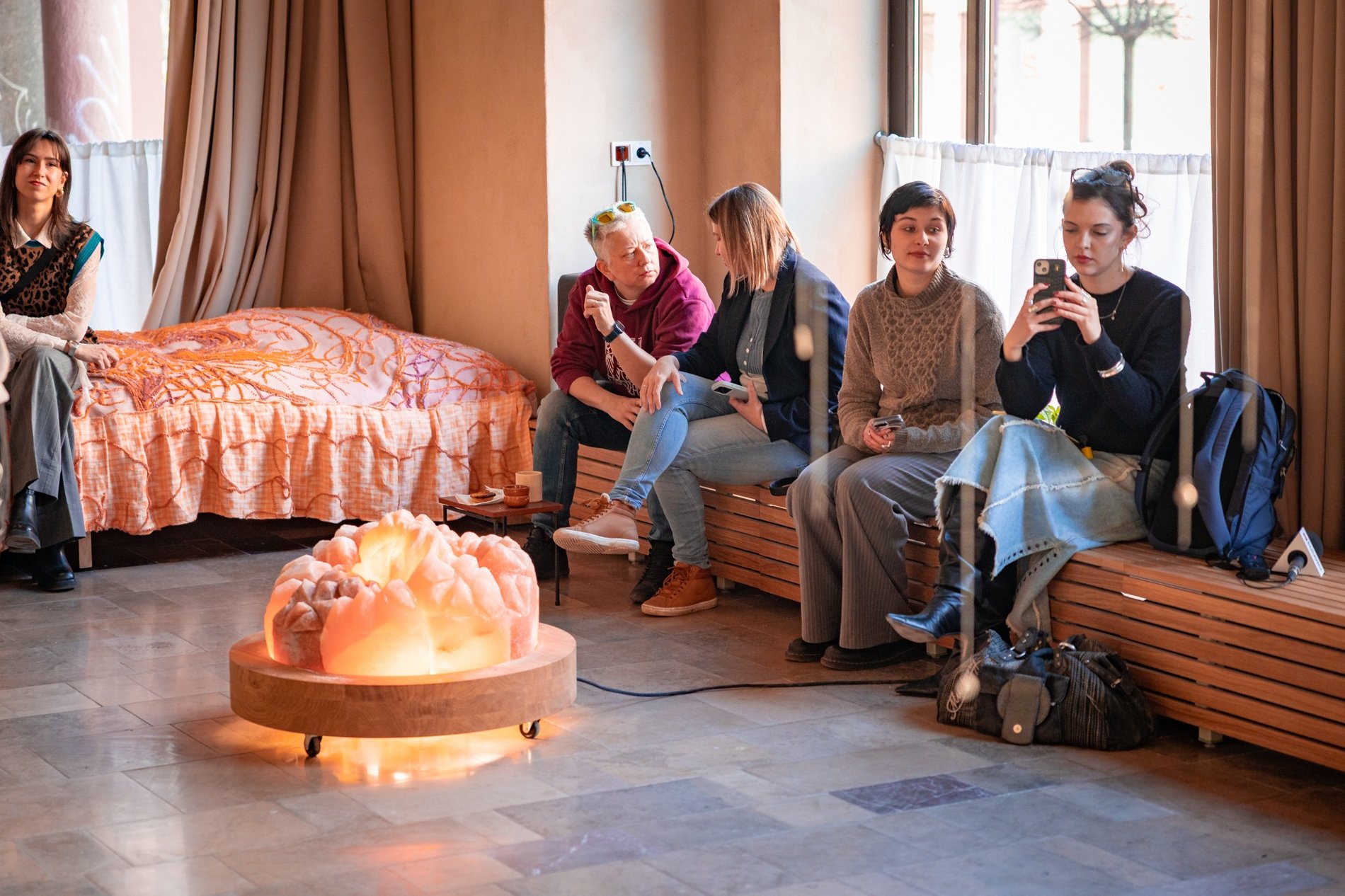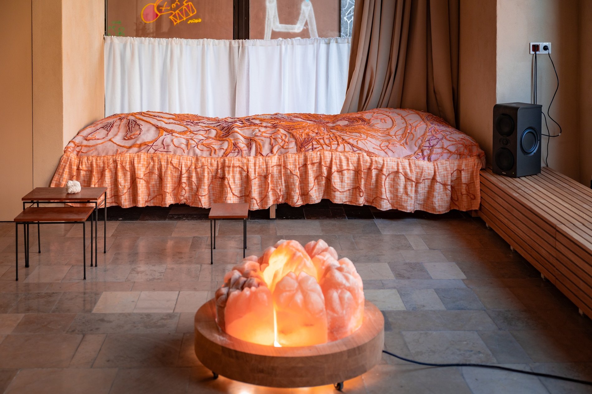 Może to ognisko z ławkami do przycupnięcia, a może góry wyrosły na środku salonu.