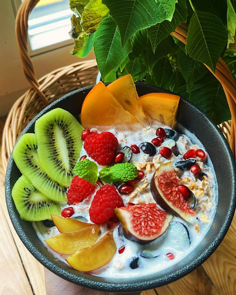 Potrawy przyrządzane są od podstaw, wyłącznie z produktów roślinnych: świeżych warzyw i owoców, roślin strączkowych, kasz, orzechów, nasion oraz ziół.