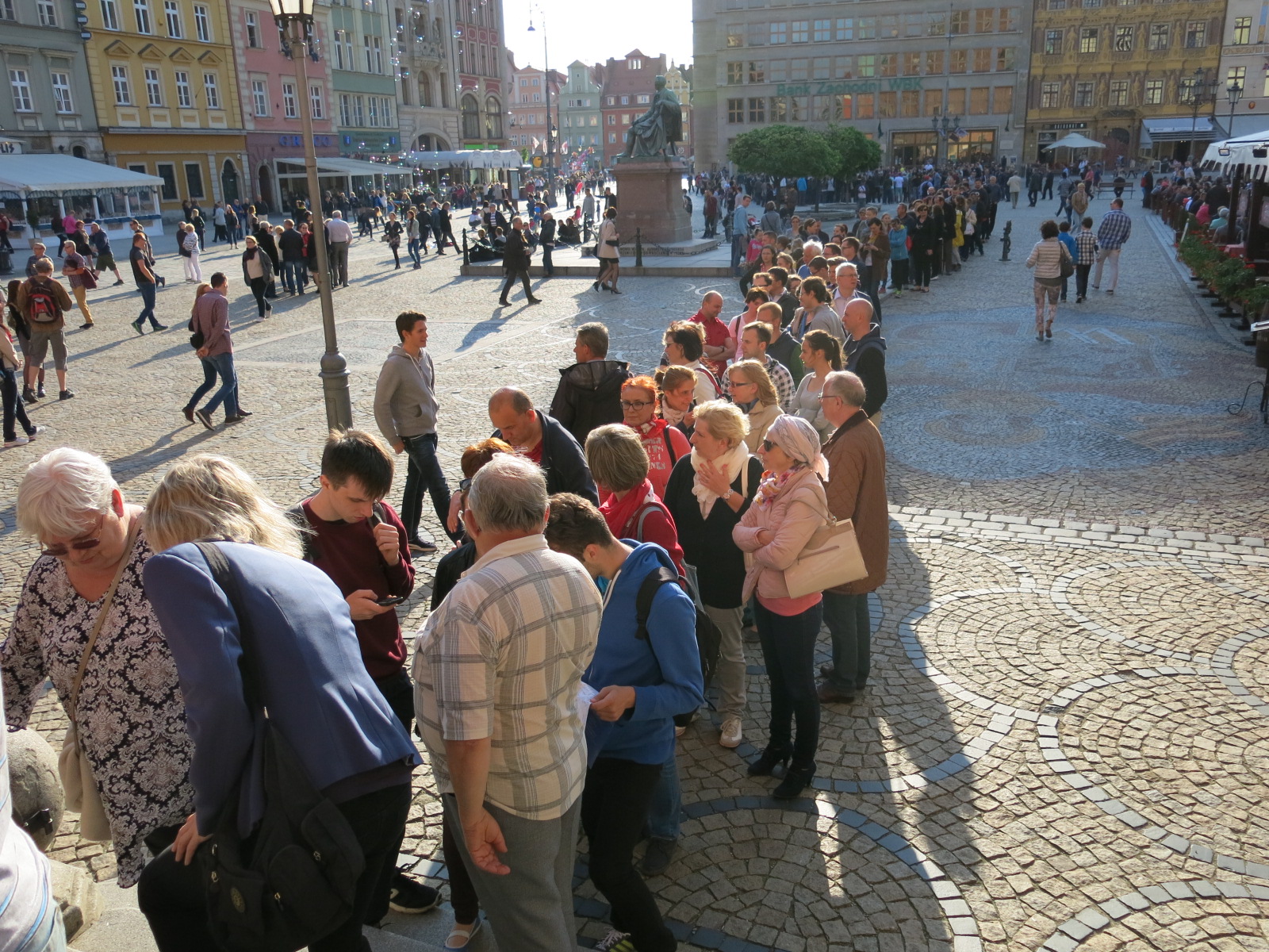 - W Starym Ratuszu po raz ostatni można obejrzeć 7 cudów Wrocławia i Dolnego Śląska. Chętni zwiedzający uformowali długaśną kolejkę na Rynku i cierpliwie czekają na wejście do budynku. Na szczęście słońce także im sprzyja.