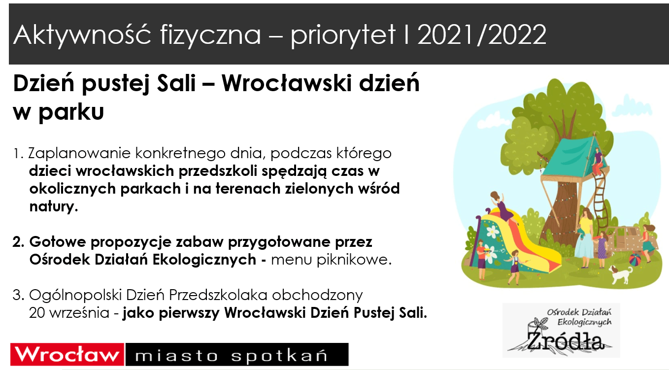 Wsparcie nauczycieli przez Wrocławskie Centrum Doskonalenia Nauczycieli (WCDN) w uatrakcyjnieniu zajęć świetlicowych. Aktywne świetlice, dbające przez gry i zabawy ruchowe o prawidłowy rozwój fizyczny ucznia, będą dostawać specjalne certyfikaty.