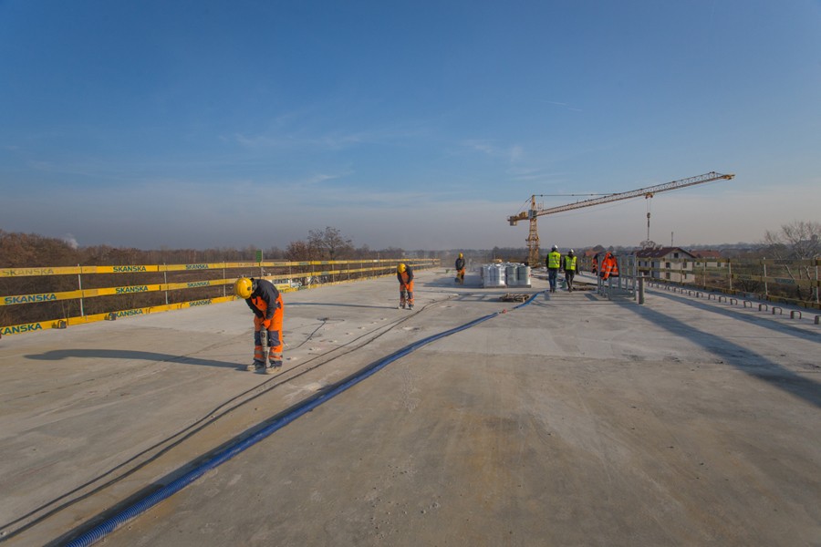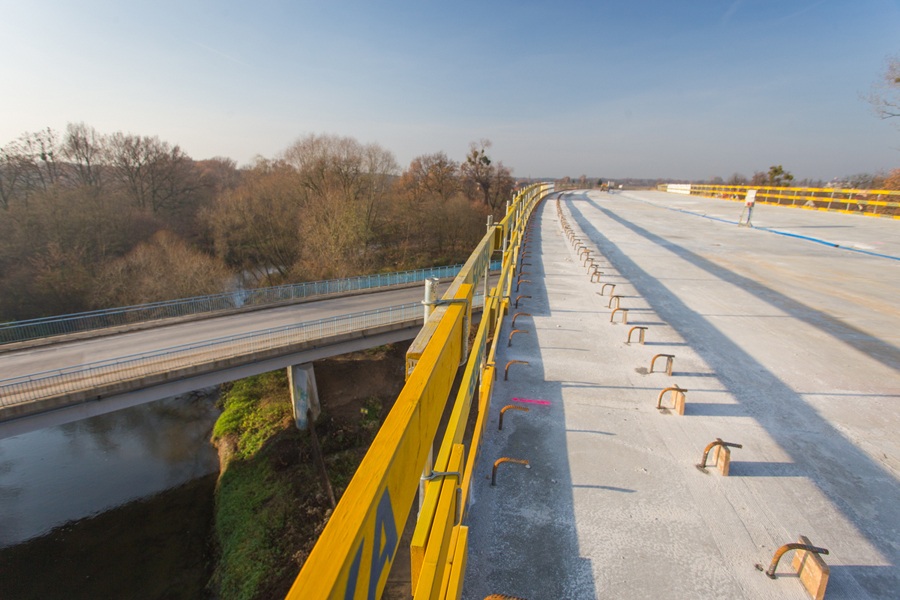 Na nowym moście trwają już przygotowania do budowy na nim jezdni o standardowej szerokości 7 m i tzw. ciągu pieszo-rowerowego. Cała konstrukcja estakady jest już gotowa. Czeka tylko, aż nasypami połączy się z naziemną częścią obwodnicy.