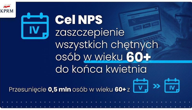 W najbliższych 2 tygodniach do punktów szczepień w całej Polsce trafi ponad 2 mln szczepionek. W związku z tym przyspieszone zostają działania w ramach Narodowego Programu. Do końca kwietnia br. zaszczepione mają zostać, przynajmniej jedną dawką, wszyscy chętni powyżej 60. r.ż.