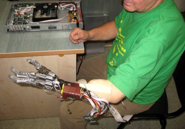 Dzięki temu wynalazkowi, osoba, która straciła własną rękę nie musi rezygnować z wykonywania wielu podstawowych czynności, jak trzymanie przedmiotów, golenie się, otwieranie książki czy nawet prowadzenie samochodu. Na Politechnice Wrocławskiej, w Zakładzie Inżynierii Biomedycznej i Mechaniki Eksperymentalnej, jego szef prof. Romuald Będziński wespół z dr. Krzysztofem Krysztoforskim opracowali (2011 r.) pierwszy w Polsce prototyp protezy dłoni, sterowany impulsami elektrycznymi lub akustycznymi, płynącymi z mięśni. Konstrukcję, nad którą pracowano przez trzy lata, wykonano z aluminium, plastiku i stali i wiązki przewodów. Jest ona montowana do modelowanej na miarę nakładki, która ma elektrody dociśnięte za pomocą sprężynek do uciętego mięśnia – ponad nadgarstkiem, do kikuta przedramienia. Proteza jest poruszana siłą woli – pomimo amputacji sygnały z układu nerwowego nadal płyną z mózgu przez rdzeń kręgowy aż do mięśni szkieletowych, elektrody ze sztucznej dłoni zbierają impulsy elektryczne z ruchu mięśni, przekazują je do mikroprocesora, który steruje silnikiem, i do trzech zębatych przekładek zębatych. One wprawiają w ruch aluminiowe palce: kciuk, wskazujący i środkowy. Mały i serdeczny palec są puste. Trzypalczasta proteza jest zdaniem uczonych łatwiejsza w treningu dla pacjentów. No i ta z pięcioma palcami jest zdecydowanie droższa. (fot.: Prototyp protezy dłoni, Politechnika Wrocławska)