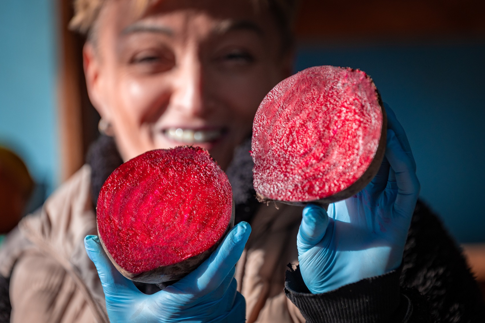 Na bazarze Komandor można kupić buraki od lokalnych dostawców. Wielu sprzedawców, którzy mają je w swojej ofercie to ich plantatorzy. Jedną z nich jest Swietłana Łukan, która ma tam swoje stoisko.