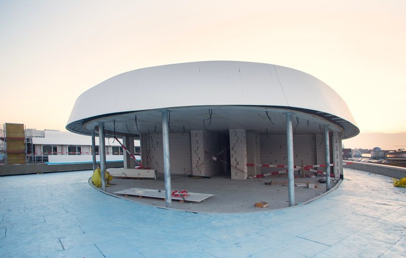 Inwestor informuje, że obecnie w części restauracyjnej i w sali balowej, na parterze, zakładane są oprawy oświetleniowe o oryginalnym wyglądzie – tzw. wulkany. To lampy o oryginalnym zaokrąglonym kształcie przypominającym wulkanistą górę. Na wyższych kondygnacjach również trwają intensywne prace wykończeniowe. Na przykład w 190 pokojach pięciogwiazdkowego hotelu DoubleTree by Hilton układane są już tapety i wykładziny, a także montowane drzwi. Trwa również kafelkowanie łazienek.