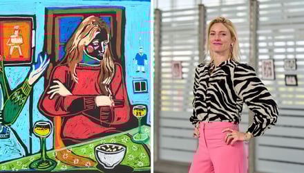 Rysuje w powietrzu, rysuje na ziemi. Stewardesa z wystawą na lotnisku