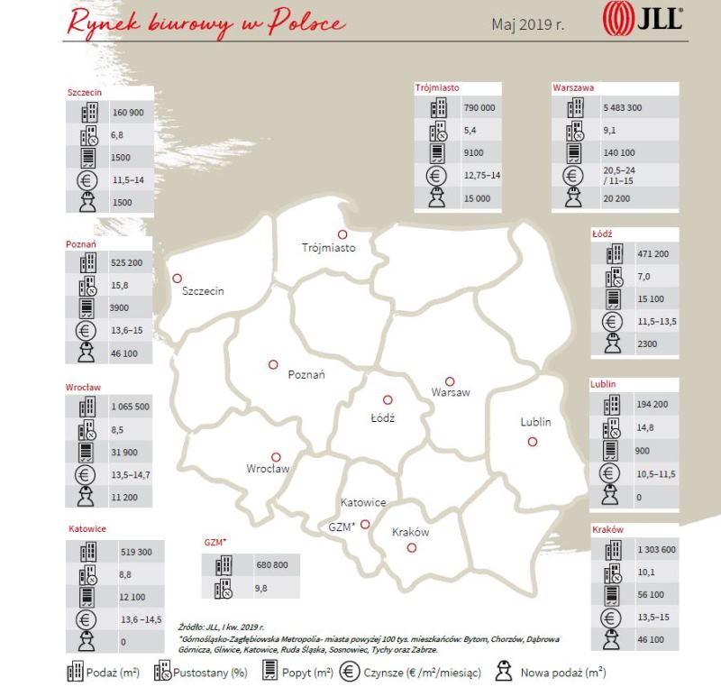 Z kolei firma doradcza JLL w raporcie „Rynek biurowy w Polsce - maj 2019” podkreśla, że aktywność deweloperów w miastach regionalnych wynosi obecnie 800 tys. mkw.