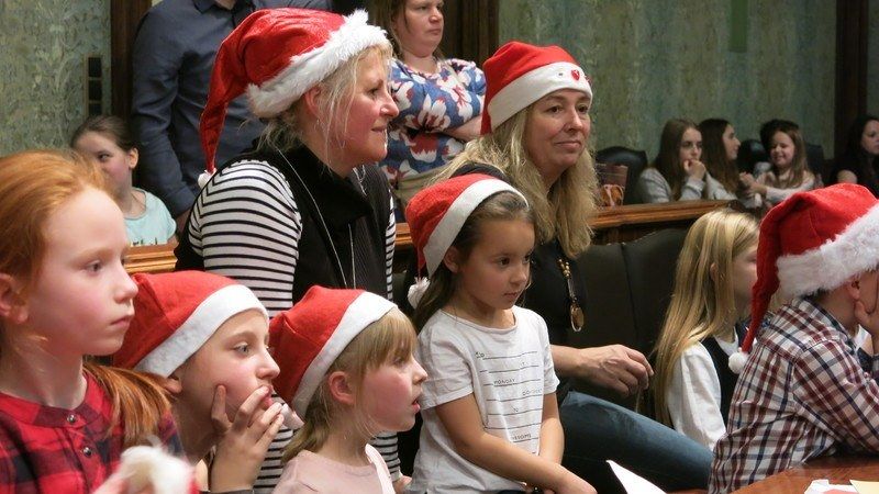 Podczas wieczoru, którego najbardziej wyczekiwanym momentem było oczywiście losowanie „zwycięzców” tegorocznej Choinki Marzeń, dzieci chwaliły się swoimi talentami – tańcem, śpiewem, przygotowanymi okrzykami. Przyniosły również własnoręcznie wykonane banery, wiele z nich przywdziało na tę okazję mikołajowe czapeczki. Przed salą sesyjną wystawiły również plansze, informujące o ich klubach i o tym, czym się tam zajmują.