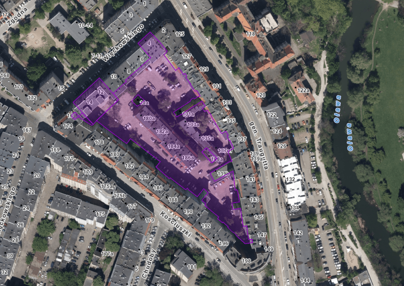 Będziemy rozmawiać o zaktualizowanym planie remontu podwórka we Wrocławiu, w części otoczonej ulicami: Traugutta (numery domów: 125–149), Więckowskiego (numery: 2–16) i Kościuszki (numery: 174–198).