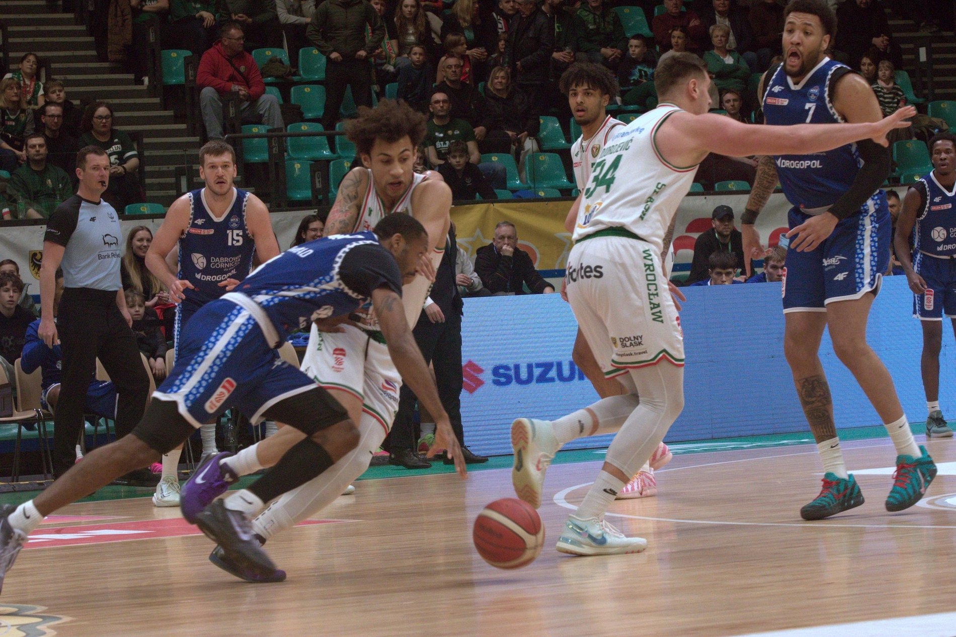 W drużynie gości z Dąbrowy Górniczej wyróżniali się Adrian Bogucki (20 pkt, 8 zbiórek) i Dominic Green (18 pkt, 3 zbiórki).