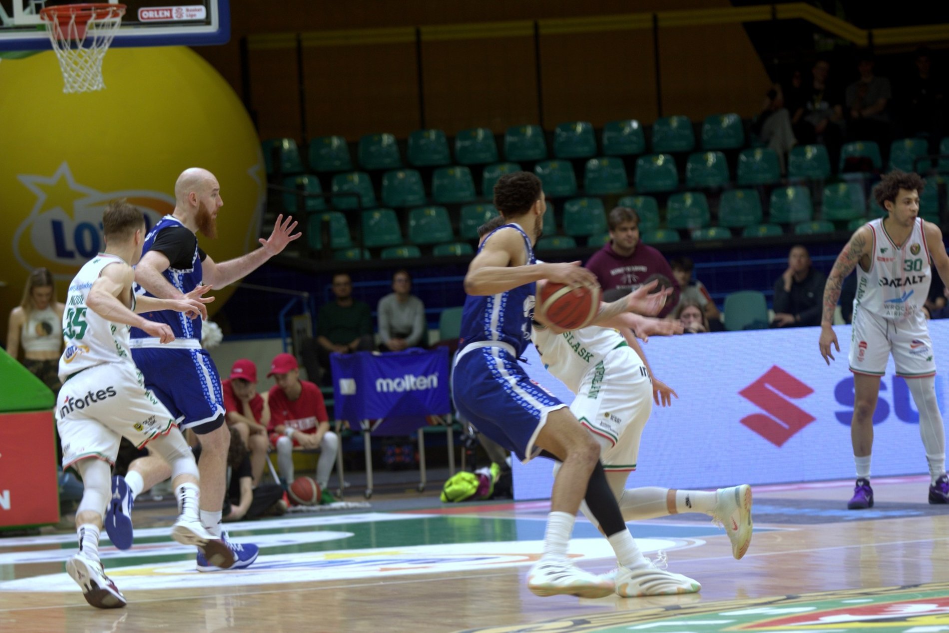 Po pierwszej kwarcie był remis 25:25. Dopiero w drugiej, gdy na parkiet wszedł Jarvis Williams, który wrócił do drużyny po wielu latach, koszykarze Śląska odskoczyli rywalom i schodzili na przerwę z prowadzeniem 48:39.