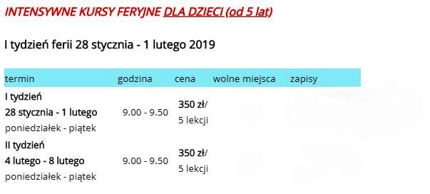 Intensywny kurs podczas ferii zimowych (28 stycznia - 10 lutego 2019 r.) dla dzieci: