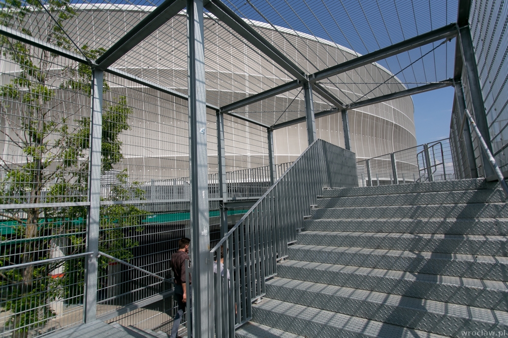 Z poziomu murawy uwagę przykuwa zwłaszcza trybuna X, jedyna która została ogrodzona metalowym płotem, podczas gdy pozostałe sektory oddziela od siebie jedynie ściana z pleksi. – Zadaniem plastikowych płotów jest ułatwienie ewakuacji. Dzielą one stadion na sektory, w których może zasiąść po 10 tys. osób. Dzięki temu widzowie mogą sprawniej opuścić trybuny poprzez znajdujące się na nich wyjścia ewakuacyjne – tłumaczy rzecznik spółki Wrocław 2012 Adam Burak.