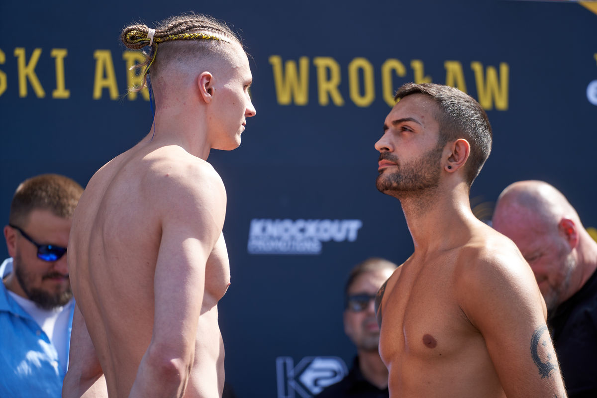 Oficjalne ważenie rozpoczęła seria prezentacji pięściarzy, którzy w sobotę wieczorem także pojawią się w ringu na Tarczyński Arena. Ich pojawienie się na estradzie wywoływało pojedyncze pozdrowienia z tłumu, na ogół od członków ekip poszczególnych sportowców. Wszyscy czekali na gwiazdy bokserskiego wydarzenia i musieli wykazać się cierpliwością. Bowiem organizatorzy, aby podkręcić emocje przez kulminacją zarządzili przerwę.
