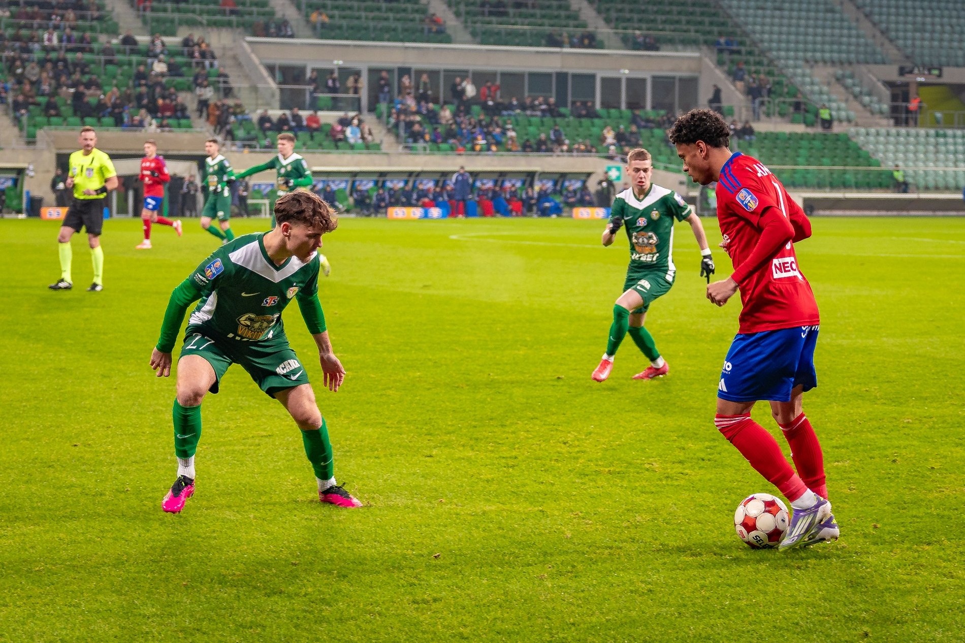 Goście zdobyli prowadzenie pod koniec pierwszej połowy. Na listę strzelców wpisał się w 43 minucie Jonatan Braut Brunes. Po wyjściu z szatni na drugą część meczu, gospodarze ruszyli z animuszem na bramkę rywali. Efektem tego był świetny strzał Piotra Samca-Talara w 49 minucie. Niestety piłka trafił w słupek i okazja na wyrównanie rozwiała się.
