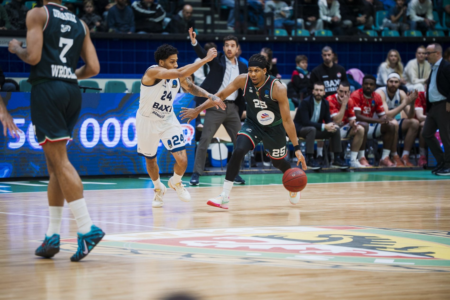 Pewny siebie Śląsk zaskoczył rywali intensywnością i skutecznością, powiększając przewagę z akcji na akcję. Obrona była szczelna, atak efektywny. Każdy mocno chciał, prawie wszystko wychodziło. W pewnym momencie różnica osiągnęła 14 punktów, a po dwóch kwartach na tablicy świecił się wynik 54:43.