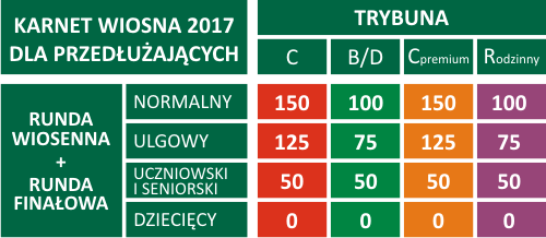 Posiadacze karnetów całosezonowych również są upoważnieni do oglądania meczów rundy finałowej z trybun wrocławskiego stadionu. Podobnie jak ceny biletów, tak i ceny karnetów zostały obniżone.