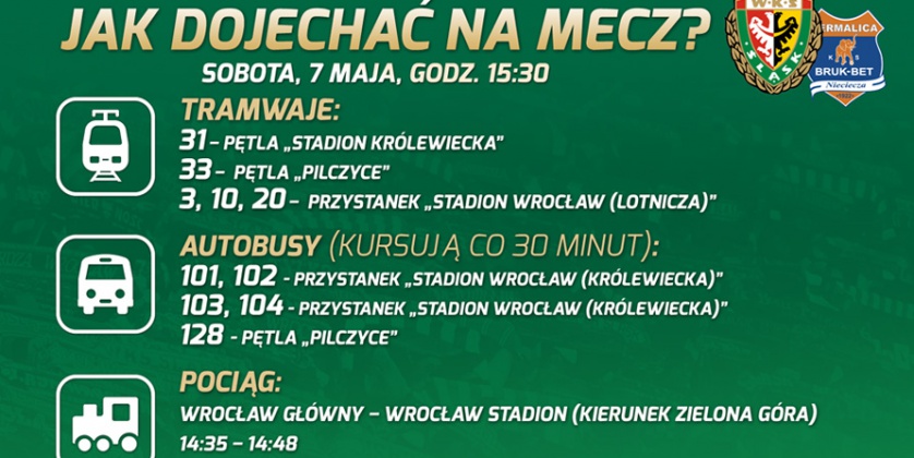 Na sobotni mecz warto wybrać się komunikacją miejską. Do tego także namawia wrocławski klub.