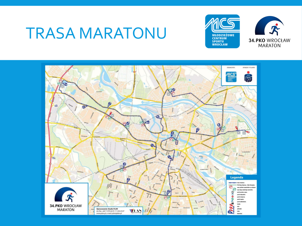 Wrocławska trasa liczy 42 195 metrów i posiada atest AIMS i PZLA.
