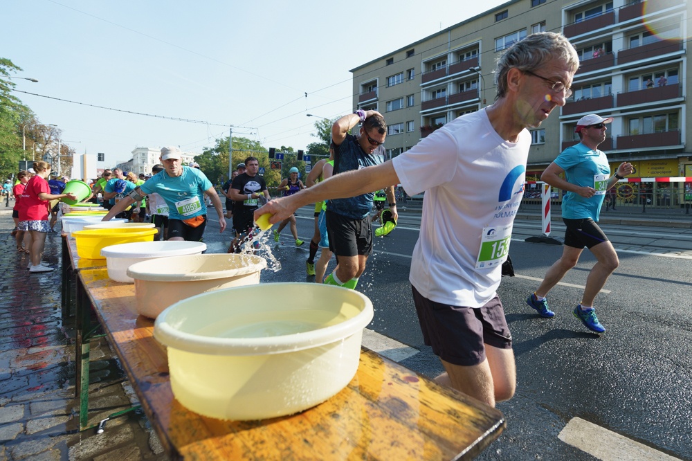 Z każdym kolejnym przebiegniętym kilometrem zawodnicy musieli się zmagać nie tylko z nasilającym się zmęczeniem, ale i ze wzrastającą temperaturą, co wpływało na tempo biegu. Gdy pierwsi zawodnicy wbiegli na ulicę Legnicką, czyli na 15 km trasy temperatura oscylowała już w okolicy 25 stopni Celsjusza. Obecne na trasie liczne kurtyny wodne cieszyły się dużym zainteresowaniem wśród biegaczy.