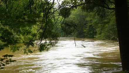 Wysoki stan wody w Ślęzie na południe od Wrocławia