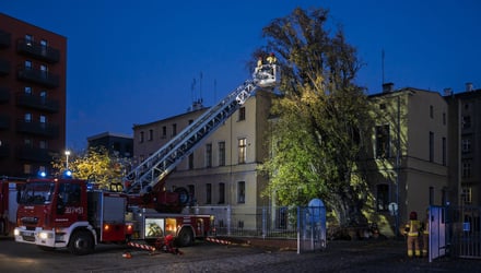 Drzewo spadło na budynek przy Tęczowej. Akcja Straży Pożarnej