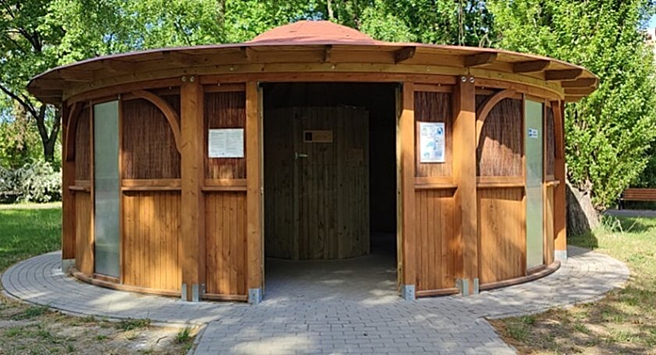 Tężnia solna z suchym aerozolem solnym(SAS) wzorowana na funkcjonującym obiekcie w parku. Do wytwarzania aerozolu wykorzystano urządzenie medyczne o nazwie halogeneratora. SAS osiadając na błonie śluzowej dróg oddechowych wywołuje sekretolizę, upłynniając zalegający śluz i oczyszczając układ oddechowy. Dodatkowo wspomagając proces fagocytozy niweluje stany zapalne. Inhalacje są w pełni bezpieczne, nie wymagają nadzoru lekarza. Wytwarzanie SAS odbywa się bez udziału wody. W związku z tym nie potrzebne jest przyłącze wodne i kanalizacyjne, a tężnia może działać cały rok. W odróżnieniu od tradycyjnych tężni solankowych, tężnia solna jest bezpieczna dla otaczającej zieleni, przez co może być lokalizowana w parkach objętych opieką konserwatora