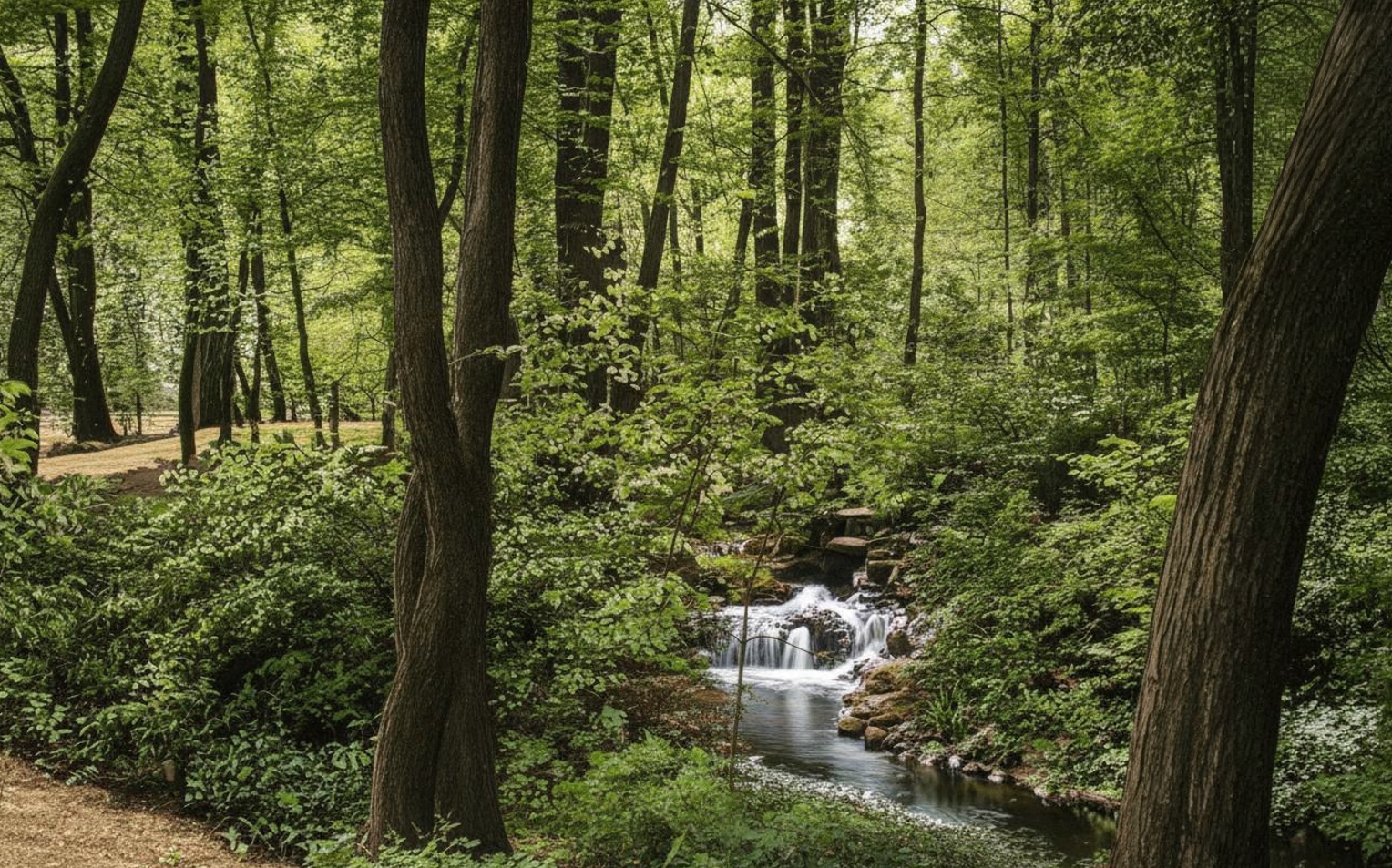 4. Nową ścieżkę parkową od strony wschodniej pozwalająca dojść do kaskady i oczka wodnego