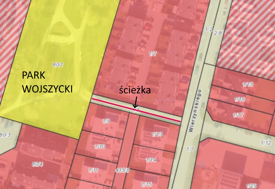 1 x 1. WOJSZYCE - dojście do parku Wojszyckiego od ul. Wierzyńskiego (działka: WOJSZYCE, AR_13,1/3) - 60 m ścieżki szutrowej