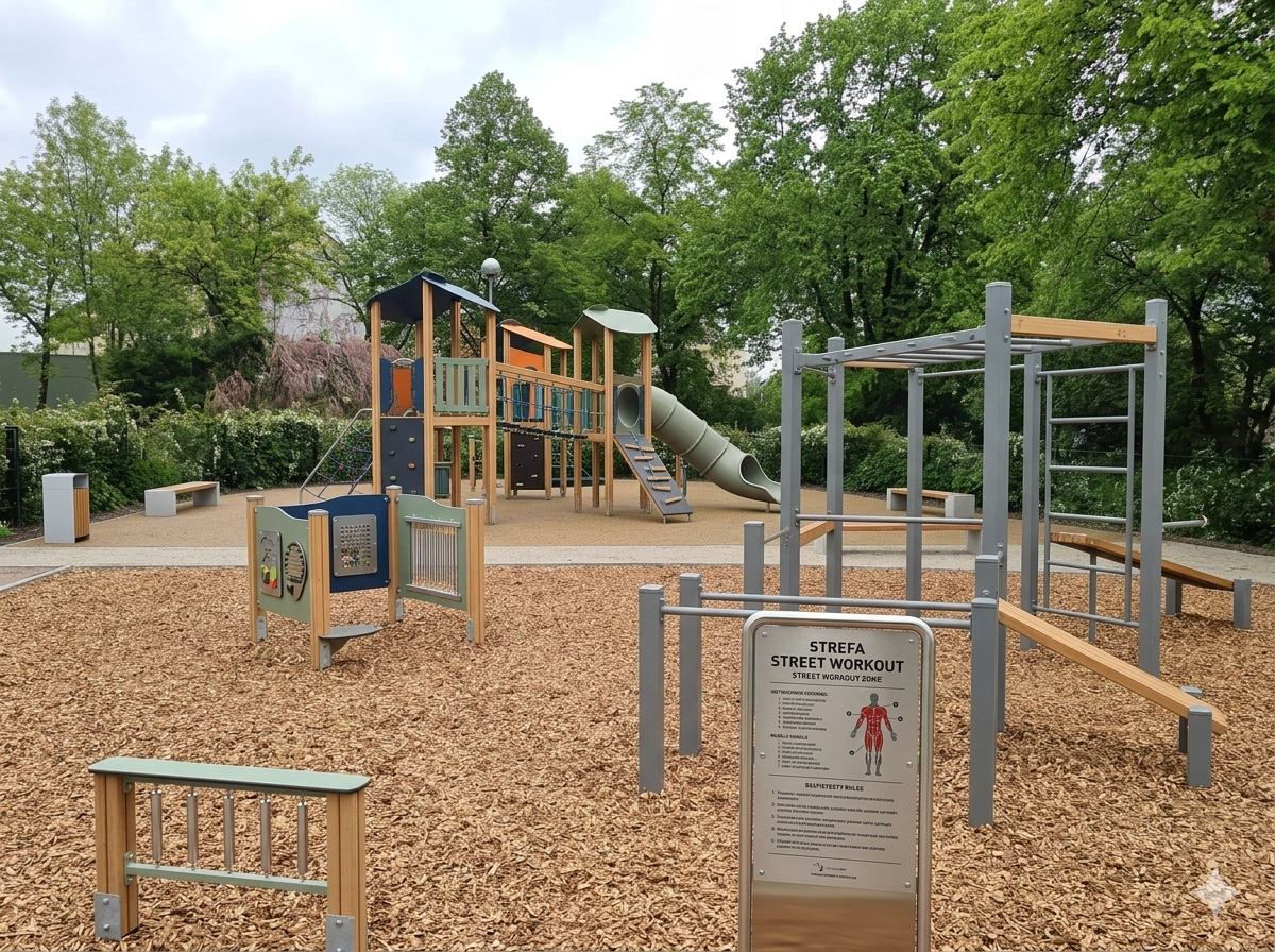 Żerniki: Przebudowa placu zabaw na zieleńcu między ul. Objazdową, a ul. Żernicką z dodaniem strefy street workout dla dzieci starszych i dorosłych